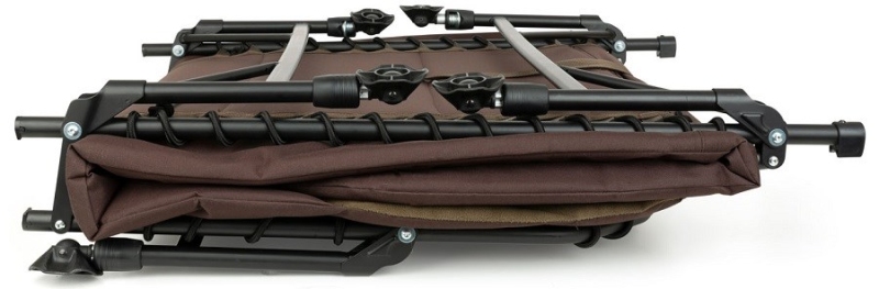 - Systém popruhu a přezky umožňuje zabalení lehátka společně se spacákem
