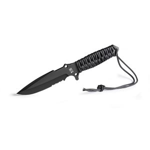 MARAUDEUR SURVIVAL KNIFE PARACORD 550 ® BLACK / SERRATED BLADE + KYDEX SHEATH