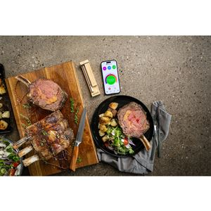MEATER PROPředstavujeme náš špičkový bezdrátový chytrý teploměr na maso – dokonalý kuchyňský nástroj, který posouvá vaše kulinářské dovednosti na zcela novou úroveň!Rozlučte se s odhady a převařeným masem a přivítejte dokonale připravené pokrmy – pokaždé.Specifikace Přímé grilování až do 550 °C – sondu můžete nechat zapíchnutou v mase i při přímém ohni během grilování nebo prudkém opékání. Bezdrátová technologie: vybaven Bluetooth 5.2 Coded PHY s dlouhým dosahem. Smart Temp™ Multisensor technologie: MEATER Pro detekuje skutečně nejnižší teplotu v mase a vede vás k dokonalému výsledku. Voděodolný design: vhodný pro fritování a vaření metodou sous vide, poté jednoduše omyjte v myčce nádobí. Rychlé nabíjení: než si stihnete projít aplikaci MEATER, máte nabito pro první dvouhodinové vaření. Krátké 15minutové nabíjení vystačí až na 12 hodin provozu. Přesnost: laboratorně testováno třístupňovou kalibrací, senzory mají přesnost ±0,1 °C. Každý MEATER Pro je dodáván s Certifikátem kalibrace. Upozornění: dostávejte upozornění, kdy maso sundat z ohně, jak dlouho ho nechat odpočívat a kdy je čas servírovat. Nastavte si i vlastní upozornění podle vnitřní či okolní teploty nebo času a přizpůsobte si vaření na míru. Aplikace tak přehledná, že ji zvládnou i vaše děti.Parametry sondy Nerezová ocel Keramický pásek z oxidu zirkoničitého 5 vnitřních senzorů a 1 senzor okolní teploty Rychlé nabíjení: 5 minut nabíjení = 2 hodiny vaření 30 minut nabíjení = 24 hodin vaření Plně nabitá sonda vydrží více než 24 hodin Maximální vnitřní teplota: 105 °C Maximální okolní teplota: 550 °C Přesnost: ±0,3 °C Bluetooth 5.2 Coded PHY s dlouhým dosahem Průměr: 5 mm Elegantní a tenký designParametry nabíjecí stanice Bluetooth 5.2 Coded PHY s dlouhým dosahem Energeticky úsporný design: 1× AAA baterie (součástí balení), výdrž až 2 roky* * průměrné použití: jeden steak týdně Rychlé nabíjení: 5 minut nabíjení = 2 hodiny vaření Vyrobeno z přírodního, udržitelného bambusu Magnety na zadní straně pro uchycení na kovové povrchy + protiskluzová guma proti klouzání Moderní minimalistický design Rozměry: 157 mm × 37 mm × 23 mmPožadavky na aplikaci iOS: verze 15 a novější Android: verze 8.0 a novější