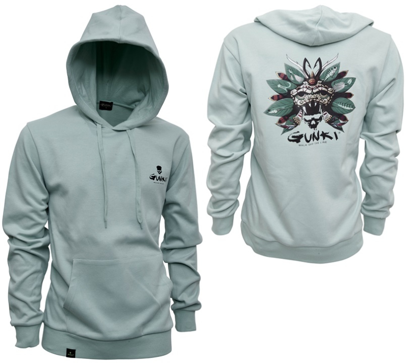 Pohodlná mikina s logem Gunki. Má nastavitelnou kapuci a velkou klokaní kapsu. Příjemný a poddajný materiál. Složení: 60% bavlna, 40% polyester, gramáž látky 280g/m2.
