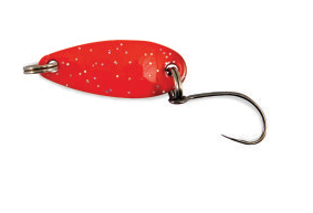 Tato třpytka pracuje skvěle ve stojaté vodě i v proudu. Díky svému tvaru létá opravdu daleko, a přitom skvěle chodí i při pomalém vedení. Vhodná pro lov lososovitých ryb, ale milují ji i okouni nebo tloušti. Velikost: 2 g (2,5 cm). Barva: červená, zlaté tečky.