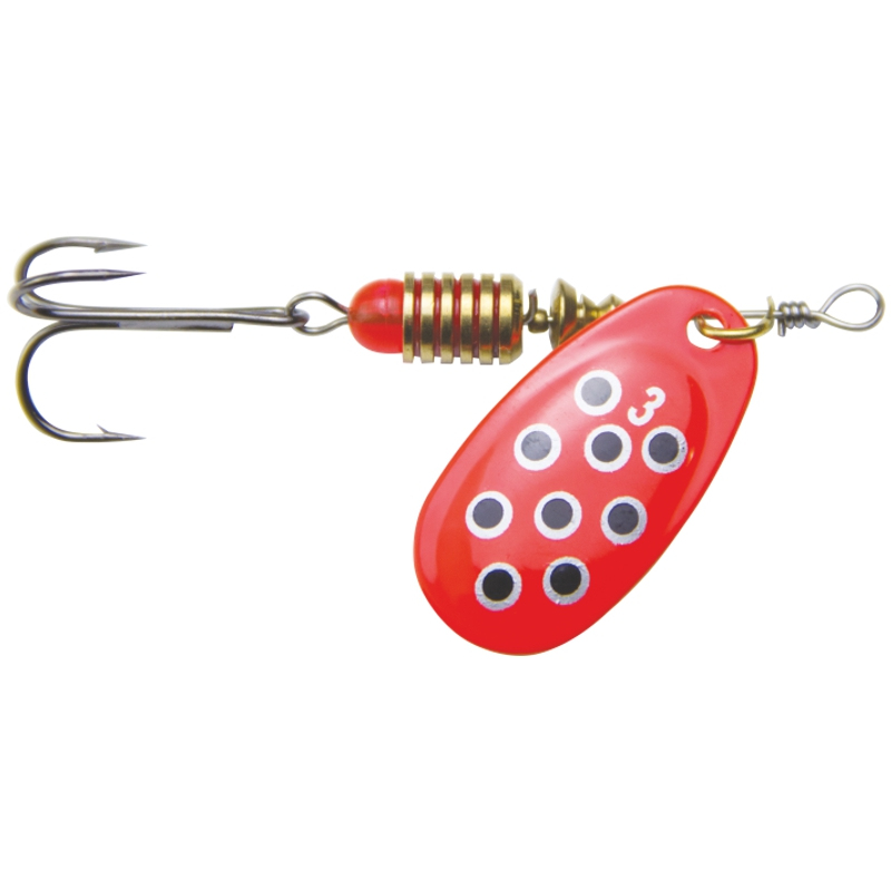 Univerzální rotační třpytka, vhodná na všechny druhy dravých ryb. Je určena do klidných řek, rybníků a přehrad. Točí se i při velmi pomalém tažení. Značkový VMC trojháček je velmi ostrý a pevný, nehrozí tedy, že by se ryba při záběru nepíchla.