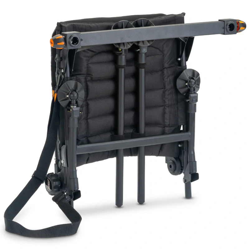 MS Range Contest Feeder Chair je stabilní a pohodlné křeslo pro feederové rybáře, kde je pevná pozice důležitá i při montáži doplňků, například dlouhých podpěr prutů. Součástí jsou dvě samostatné výškově nastavitelné přední nohy, které umožňují přizpůsobit křeslo různému terénu a povrchu. Sedací plocha je silně polstrovaná a kvalitně zpracovaná, takže se pohodlně sedí i při delších vycházkách. Pro snadný transport lze nohy upevnit na spodní stranu sedáku, křeslo má sklopnou opěrku zad a dá se dobře skladovat i převážet. V balení je i ramenní popruh pro pohodlné nošení.
