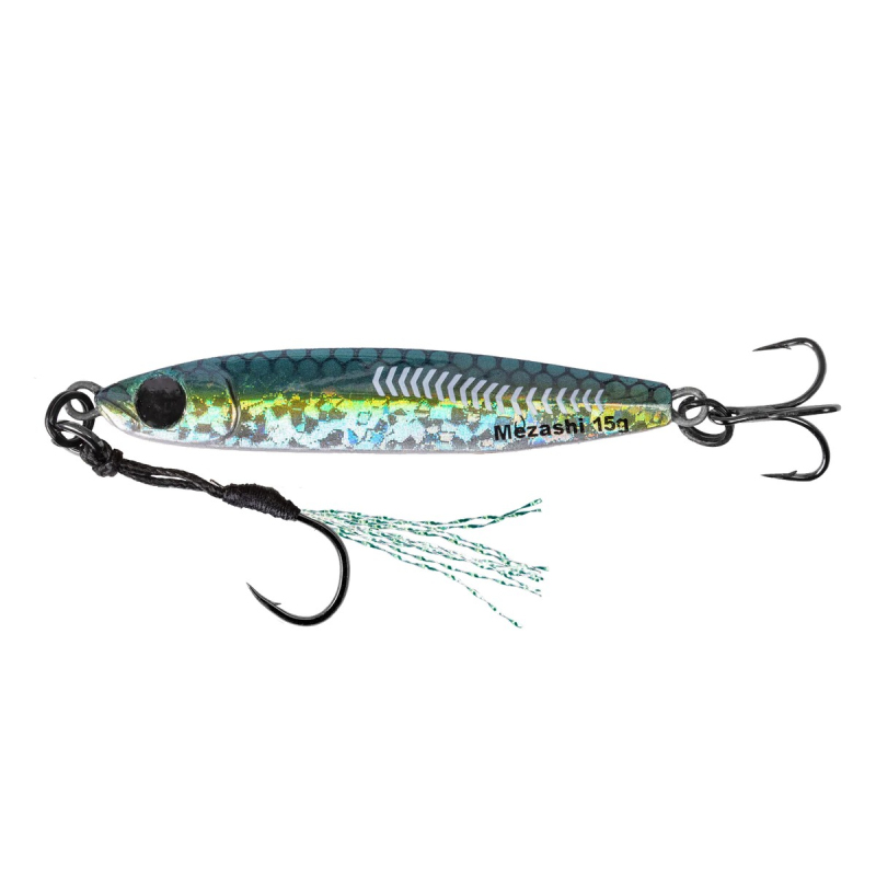 MUSTAD MEZASHI CASTING JIGMustad Mezashi Casting Jig je nejnovější kovová nástraha značky Mustad navržená pro výrazný dráždivý efekt a vysokou účinnostVytváří nepravidelný agresivní pohyb s intenzivním odrazem světla který je pro dravé ryby mimořádně lákavýPrůhledné barevné oko láme a odráží světlo čímž vytváří přirozený záblesk ve vodě a spolehlivě vyvolává záběrAsymetrický tvar těla zajišťuje výraznou kývavou wobbling akci při vedení přičemž jedna strana je zaoblená a druhá trojúhelníkového tvaruRozložení hmotnosti v poměru 45 ku 55 dále zvyšuje agresivní pohyb a jedinečnou prezentaciNástraha byla navržena v Japonsku a vyrobena z prémiových vysoce reflexních materiálůVpředu je osazena assist háčkem Mustad UltraPoint a vzadu trojháčkem UltraPoint pro maximální úspěšnost záseků-Vlastnosti-Nepravidelný agresivní pohyb-Asymetrické tělo pro výraznou wobbling akci-Průhledné reflexní oko Mezashi-Rozložení hmotnosti 45 ku 55-Assist háček Mustad UltraPoint vpředu-Trojháček Mustad UltraPoint vzaduZákladní parametry:Kód zboží: M8189-330Velikost háčku: Balení: Velikost: Hloubka ponoru(m): Váha: 30 gBarva: AJITyp: Mezashi Casting JigVerze: . Více zde