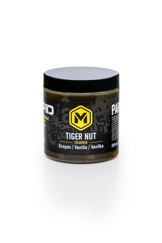 Nakládaný obarvený tygří ořech ve speciálním ochuceném nálevu. Tato zrna pocházející ze Španělska a mohou se pyšnit nejen impozantní velikostí, ale také prémiovou kvalitou. Použití tygřího ořechu otevírá nové možnosti k dosažení záběrů, zejména při lovu velmi opatrných kaprovitých ryb. Jejich vyhledávání, sbírání a drcení při požírání kapři prostě milují. Specialisté na lov kaprů proto opakovaně oceňují neskutečnou atraktivitu této osvědčené nástrahy.