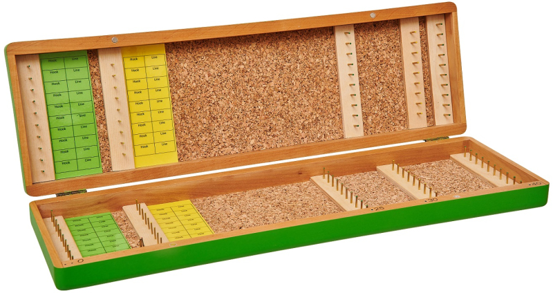 Luxusní návazcovník ze dřeva v kombinaci s korkem. Lze v něm skladovat stovky návazců v délce 50, 60 a 70 cm. Rozměry 73x8x4,6 cm.
