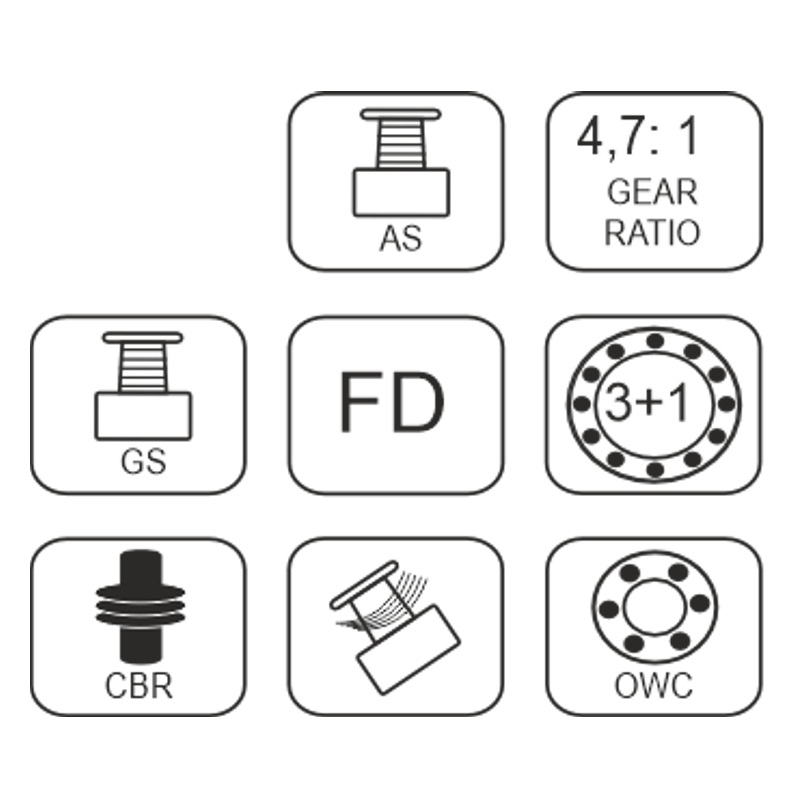 Orcus je naviják se třemi kuličkovými a jedním jednocestným ložiskem. Více zde