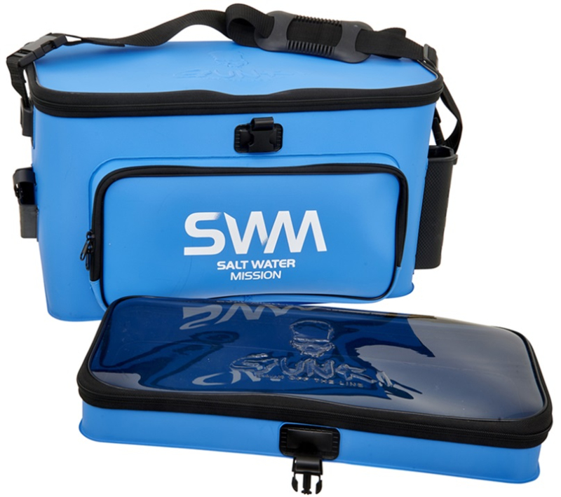 Nepromokavá taška GUNKI SWM (Salt Water Mission) z modelové řady BIG SPACE je navržená speciálně pro mořský rybolov na umělé nástrahy. Vyrobená je z kombinace 1,5 mm a 1 mm silného EVA materiálu, který je odolný a spolehlivě chrání výbavu před vlhkem. Unikátnost tohoto modelu spočívá v jeho dvoupatrovém uspořádání a velkém úložném prostoru Hlavní spodní komora slouží jako úložný prostor, který lze efektivně zorganizovat pomocí SAFE BAG PM/MM/GM/LID (prodávají se samostatně). Vrchní patro s průhledným víkem slouží jako pracovní plocha nebo přechodné místo pro odkládání nástrah, kleští či jiných pomůcek před jejich uložením do hlavní komory. Je pevně zajištěné klipy, takže zůstane stabilní i při plavbě na vlnách. K dispozici je celá řada snadno přístupných kapes pro uložení prutů, boxů, kleští nebo jiného potřebného vybavení. Odnímatelný ramenní popruh zajišťuje pohodlné přenášení a bezpečnost na lodi. Skvělá volba pro náročné rybáře, kteří si chtějí svou výbavu uchovat v perfektním stavu.