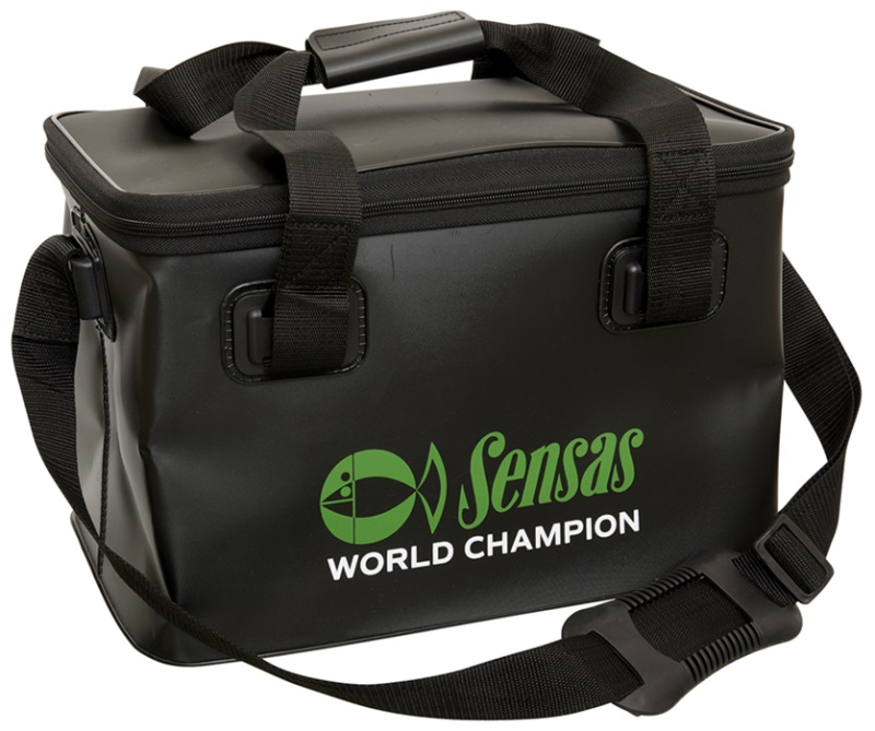 Nepromokavý box z odolného EVA materiálu s víkem na zip. Madla pro přenášení a nastavitelný popruh přes rameno. Zle použít na vybavení, nástrahy nebo krmení.