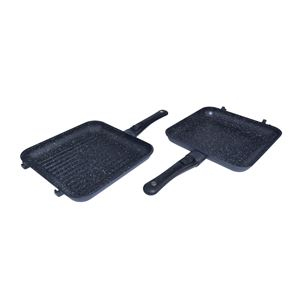 Sadu lze použít jako jednu pánev s pokličkou, nebo můžete víko jednoduše oddělit a získat dvě samostatné pánve, z nichž jedna má grilovací desku. Sada je ideální pro velké omelety, pizzy, těstoviny, smažené snídaně a další řadu jídel podle vaší chutí.