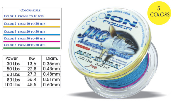 Vodu odpuzující splétaná šňůra je určena především pro mořský rybolov. Skládá se z pěti barevných úseků, které se mění po každých 10 metrech. Toto barevné označení umožňuje přesné uložení nástrahy do požadované hloubky bez potřeby měřiče hloubky.