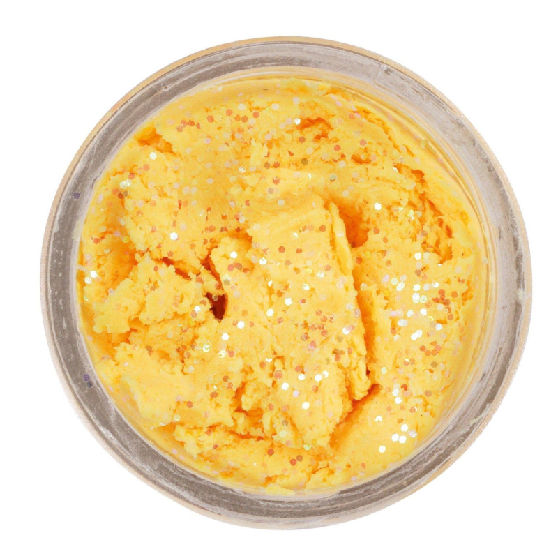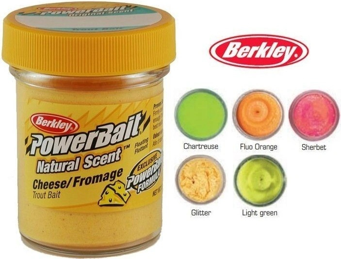 Těsto Berkley PowerBait Trout Bait Natural Glitter Cheese s výraznou chutí a aroma sýru patří k nejúčinnějším nástrahám na pstruhy a siveny na světě. Plovoucí konzistence, atraktační látky a hlavně lesknoucí se mikro-šupinky dvojnásobně zvyšují úspěšnost záběru oproti obyčejným nástrahám například tavenému sýru.