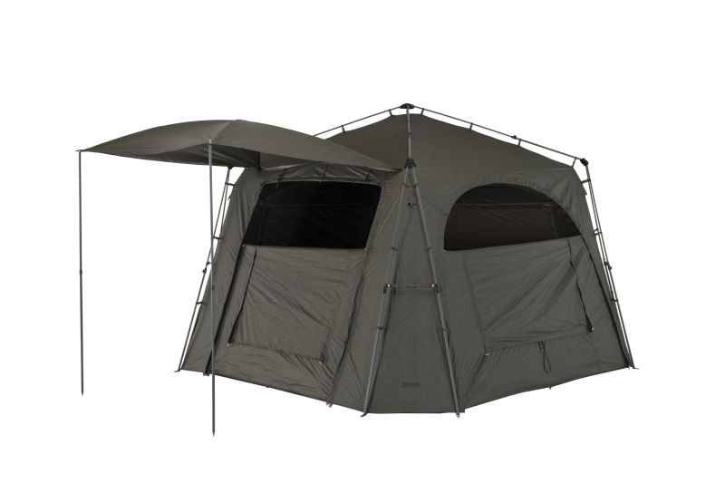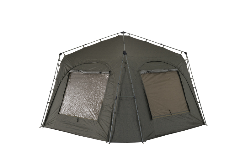 Přístřešek Mivardi Base Camp Xtreme XXL je nekompromisní řešení pro pobyt u vody za všech okolností. Jeho základem je potah z nového materiálu M-TEX415 s unikátním rozpraskaným designem. Tento materiál nabízí legendární pevnost a odolnost bivakových materiálů Mivardi, avšak s výrazně zlepšeným vodním sloupcem 15 000 mm a sníženou hmotností. Snížená hmotnost je pro použití na takto velkém přístřešku mimořádně důležitá. Všechny švy jsou zajištěny technologií FST (Flexible Seam Taping). Široké, flexibilní pásky výborně přilnou k plášti a spolehlivě utěsňují všechny švy i při používání přístřešku ve velmi nízkých či vysokých teplotách. Konstrukce a technické řešení všech detailů jsou vyladěny do posledního detailu. Přístřešek je i při své nadstandardní velikosti snadno a rychle postavitelný. Nabízí však mnohem více než jen velký prostor, dveře a okna. Jeho základem je mimořádně stabilní rám se zdvojenými stojnami, propojenými rozpěrnými tyčkami s pevnými klipy na obou koncích. Ty výrazně zpevňují konstrukci a průhyb stojen. Dvě z těchto rozpěrných tyček jsou osazeny praktickými držáky prutů na suchý zip. Všechny hlavní části rámu jsou teleskopické a jsou vybaveny spolehlivým systémem pro snadnou fixaci výsuvu. Teleskopické části rámu rovněž umožňují dosažení kompaktní přepravní velikosti a zajišťují i rychlé a pohodlné rozložení / složení přístřešku. V extrémních podmínkách je možné ještě zvýšit stabilitu přístřešku použitím čtyř kotvících šňůr. Sestavení i složení přístřešku snadno zvládne jedna osoba. Přední stěna je tvořena otevíratelným vchodovým panelem s obrovským oknem, osazeným moskytiérou, transparentním PVC a nylonovým pláštěm. Masivní zipy jsou osazeny ergonomicky tvarovanými táhly pro rychlé uchopení jedním či dvěma prsty. Táhla jsou vyrobena z fotoluminiscenčního materiálu a po nasvícení ve tmě světélkují. Přední panel typu letter box lze otevřít po stranách a klasicky srolovat nahoru nebo jej částečně rozepnout a otevírat postupně shora dolů. V přední části přístřešku se nachází velká markýza s vlastní sklolaminátovou konstrukcí. Při rozložení je podepřena dvěma stojnami a zajištěna kotvícími lanky. Markýzu je možné kompletně sklopit podél přední stěny přístřešku a není ji třeba vždy rozebírat. Speciálně řešené napojení markýzy na přístřešek účinně brání hromadění vody na střeše i při prudkém dešti. Zadní stěna i boční stěny přístřešku jsou vybaveny velkými otevíratelnými okny s nylonovým pláštěm a moskytiérou s funkcí mikroventlilace. Všechny tři tyto panely typu letter box je rovněž možné částečně otevřít či úplně odepnout. Namísto těchto stěn můžete k přístřešku připnout unikátní propojovací manžety Mivardi Bivvy Connection Kit, dostupné samostatně. Ty slouží ke snadnému napojení jednoho, dvou nebo tří téměř libovolně velkých bivaků či brolly k přístřešeku Base Camp Xtreme XXL. Připojovací manžeta dokonale obepíná připojený bivak a chrání toto napojení před deštěm i větrem. Dalším doplňkovým příslušenstvím je sada čtyř vnitřních závěsných organizérů nebo vysoce odolná podlaha. Přístřešek je standardně dodáván v dostatečně velké transportní tašce pro snadné uložení sbaleného přístřešku. Tato taška z nylonu 600D je nepromokavá a omyvatelná. Vítěz ceny GRAND PRIX veletrhu For Fishing 2026 za nejlepší exponát v kategorii rybolovná technika kaprařina.