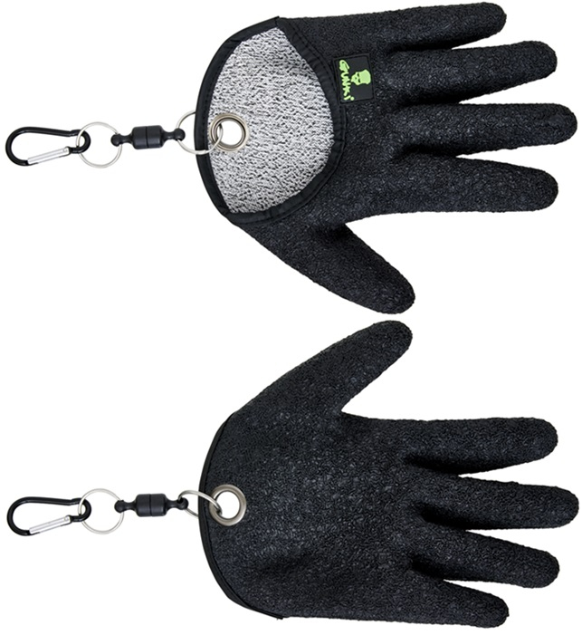 Rukavice navržená k ochraně vaší ruky při manipulaci se štikou. Pohodlná a ergonomická, lze ji nasadit jednou rukou. Vybavena je karabinou pro připnutí na tašku nebo opasek. Odolný a pevný materiál pro ochranu před štičími zuby. Složení: 20% polyuretan, 14% polyester, 6% spandex a 60% latex. Verze na pravou ruku.