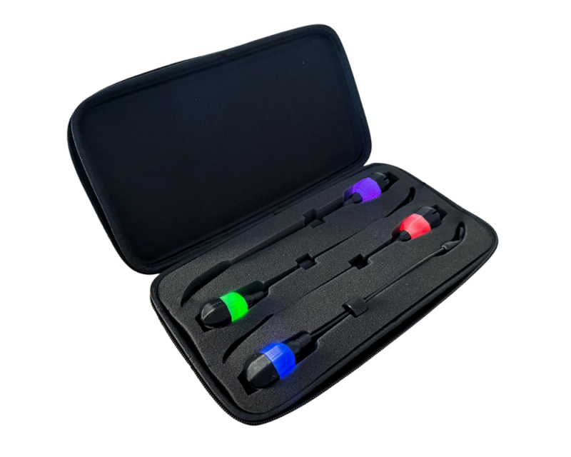 Díky otočné konstrukci hlavního těla můžete rychle měnit barvu signalizace podle aktuální potřeby nebo světelných podmínek – modrá, červená, fialová, zelená, žlutá, tyrkysová, bílá a možnost LED zcela vypnout. Každá pozice umožňuje jasnou identifikaci prutu a perfektní přizpůsobení stylu lovu.