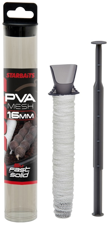 Starbaits PVA systém D-Solve obsahuje odměrku, ergonomicky tvarovaný pěchovač, dávkovač zakončený lopatkou pro snadné nabírání sypkého materiálu a hustě splétanou PVA síťku. Vše je uloženo v pevném vodotěsném plovoucím pouzdře, které chrání PVA materiál i při kontaktu s vodou. Délka 5 m, průměr 16 mm.