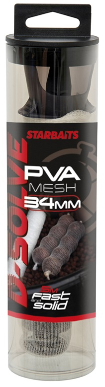 Starbaits PVA systém D-Solve obsahuje odměrku, ergonomicky tvarovaný pěchovač, dávkovač zakončený lopatkou pro snadné nabírání sypkého materiálu a hustě splétanou PVA síťku. Vše je uloženo v pevném vodotěsném plovoucím pouzdře, které chrání PVA materiál i při kontaktu s vodou. Délka 5 m, průměr 34 mm.