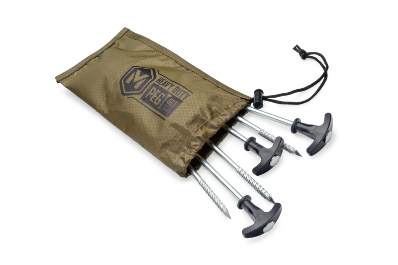 Sada 6ks zatloukacích bivakových kolíků v pevném nylonovém sáčku. Kolíky jsou velmi odolné, opatřené závitem, úpravou proti korozi a kovovou hlavičkou pro maximální odolnost i při nouzovém zatloukání např. velkým kamenem.