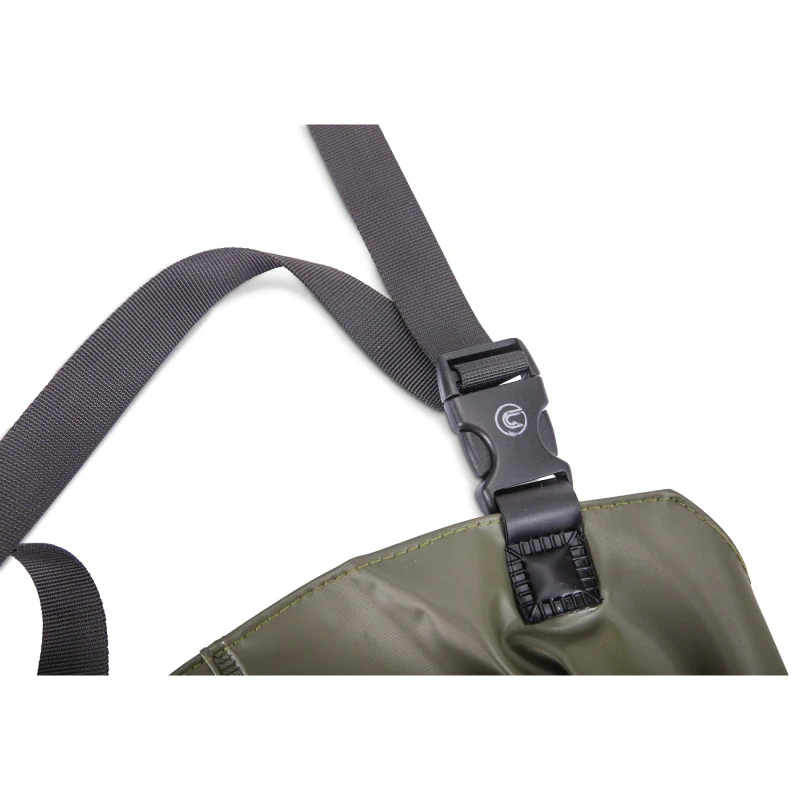 Tyto brodicí kalhoty Saenger z odolného PVC jsou stavěné na rychlé nasazení a jistý pohyb ve vodě. Součástí jsou napevno navařené PVC holínky s protiskluzovou, hrubě vzorkovanou profilovou podrážkou, která pomáhá udržet stabilitu i na kluzkém dně. Díky nastavitelným ramenním popruhům s kvalitními klipy si snadno doladíš pohodlné usazení a kalhoty drží přesně tam, kde mají. Pečlivě zpracované švy podtrhují odolnost pro běžné použití u rybníka, řeky i na zahradním jezírku.