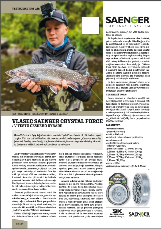 Tento produkt je výsledkem nejnovější japonské technologie a posouvá naši řadu vlasců na špičkovou úroveň. Přesně kalibrované průměry ve spojení se skvělou nosností jsou charakteristickým znakem této řady a nekompromisně ji řadí mezi nejlepší vlasce. Crystal Force je průhledný a jak název napovídá, „křišťálově čistý“, díky čemuž je pod vodou téměř neviditelný.