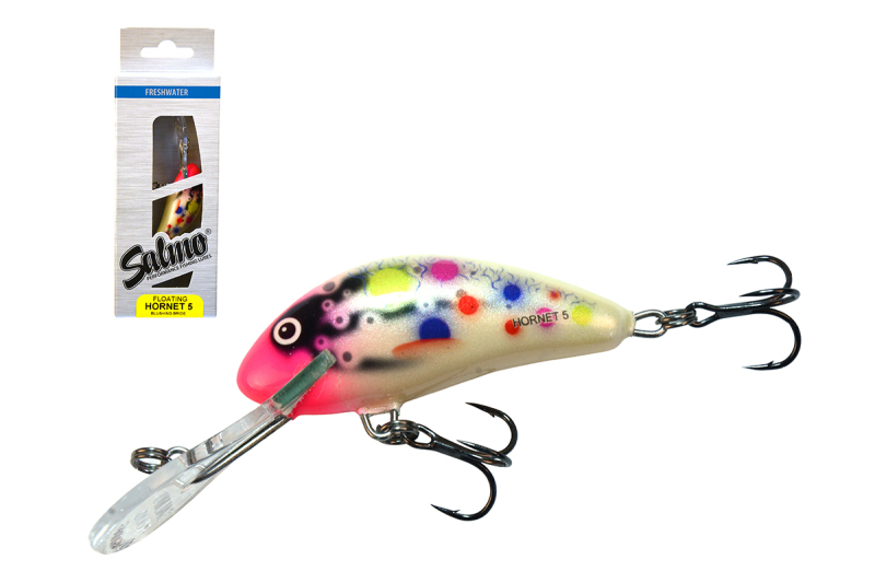Od doby, kdy existuje rodina Salmo, je typ Hornet nejprodávanější a nejoblíbenější variantou. Rozměrově sice nepatří mezi velké nástrahy, přesto je mimořádně účinný. Je vyráběn s maximální pečlivostí, protože aby i v malém těle dokázal pracovat při vysoké rychlosti bez vybočení z určené dráhy, je nutná skutečně vysoká přesnost zpracování. I přes svou nízkou hmotnost je při správně zvolené výbavě velmi dobře nahazovatelný. K dispozici je v pěti velikostech, se třemi typy lopatek, v plovoucím, potápivém i hlubinném provedení.