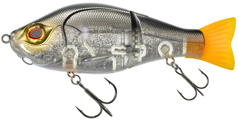 Unikátní dvoudílný wobler pro lov štik. Díky svému tvaru při volném přitahování nádherně vykresluje S akci. Tu můžeme umocnit ještě tím, že budeme Scunner jemně jerkovat špičkou prutu. Jeho « esíčka » ve vodě pak roztáhneme více doširoka a doplníme o atraktivní pauzy pro záběr ryby. Gumový výměnný ocásek pro větší atraktivitu. Očko na přídavnou zátěž pod hlavou. Díky možnosti přidat zátěž můžeme velice rychle a jednoduše měnit hloubku, ve které budeme Scunner vodit. Háčky jsou k tělíčku připevněné přes vsazené obratlíky. To minimalizuje možnou ztrátu ryb při zdolávání. Některé barvy obsahují UV body. Délka 13,5 cm, váha 53,5 g, potápivost 0,1-0,5 m, potápivý.