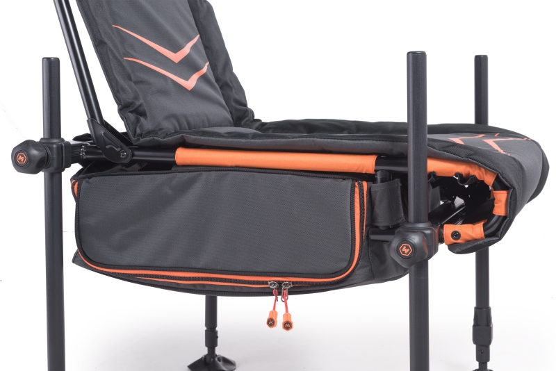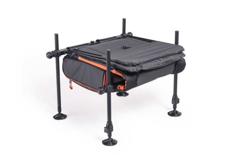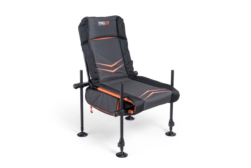 Pohodlná, dokonale stabilní a snadno přenosná. To je sedačka Feeder station TMX. Ergonomický design sedáku i opěradla spolu s kvalitně polstrovanou matrací zajišťují pohodlné sezení. Čtyři nastavitelné nohy se přizpůsobí všem nerovnostem terénu a spolu s vestavěnou libelou umožňují rychlé ustavení sedačky do roviny. Na strmých březích oceníte přední teleskopické nohy i kvalitní výkyvné patky proti zaboření. Sedačka je vybavena velkým úložným prostorem pod sedákem. Zde můžete uložit boční plata, držáky a další příslušenství. Nohy sedačky během transportu vsunete do připravených úchytů v zaoblené přední části sedáku. Opěradlo při přenášení sedačky jednoduše sklopíte a zajistíte ve sklopené poloze pomocí připravené spony. Součástí sedačky je i nastavitelný popruh pro nošení přes rameno.