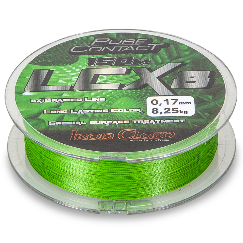 S Pure Contact LCX8 představujeme pletenou, vysoce výkonnou šňůru. Vzhledem ke své struktuře skládající se z 8 pramenů je dokonale kulatá. Kromě dobré pevnosti v uzlu má LCX8 další velkou výhodu. Označení „LC“ znamená „Lasting Color“, tedy trvanlivou barvu. Skutečnost, že si pletená šňůra po určité době používání zachová svou barvu, není samozřejmost. Barva je extrémně odolná díky speciálnímu výrobnímu procesu a šňůra je také obzvláště odolná proti oděru a hladká díky dodatečné speciální povrchové úpravě, která zajišťuje velmi dobré a téměř nehlučné klouzání očky prutu a zaručuje nahazování na velmi velké vzdálenosti.