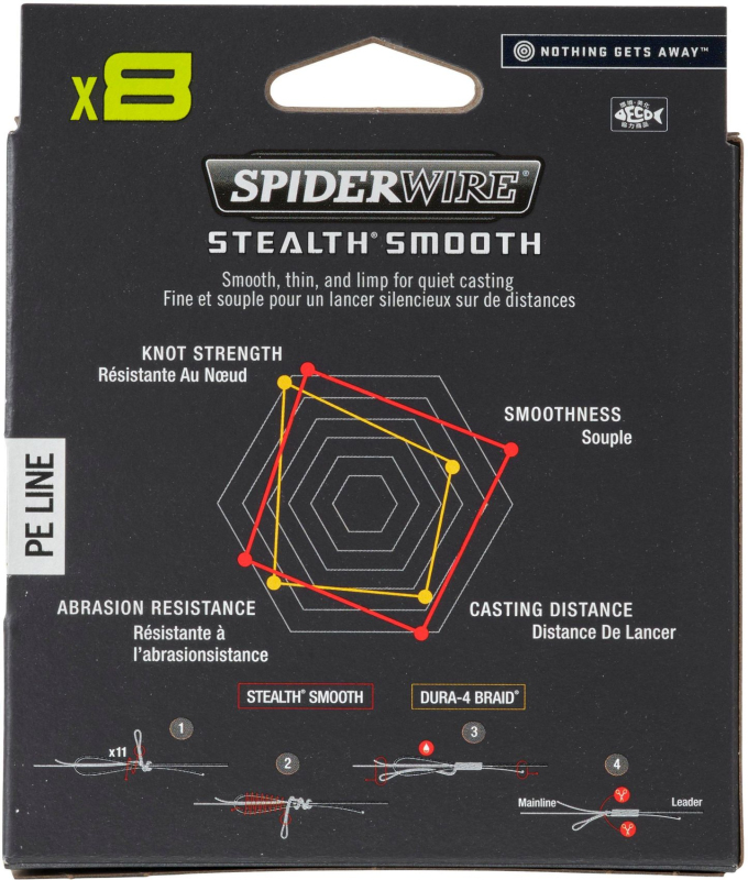 Spiderwire Stealth Smooth x8 PE Braid je super měkká a hedvábně hladká pletená šňůra, která nedělá žádné kompromisy, pokud jde o sílu, citlivost nebo průměr.