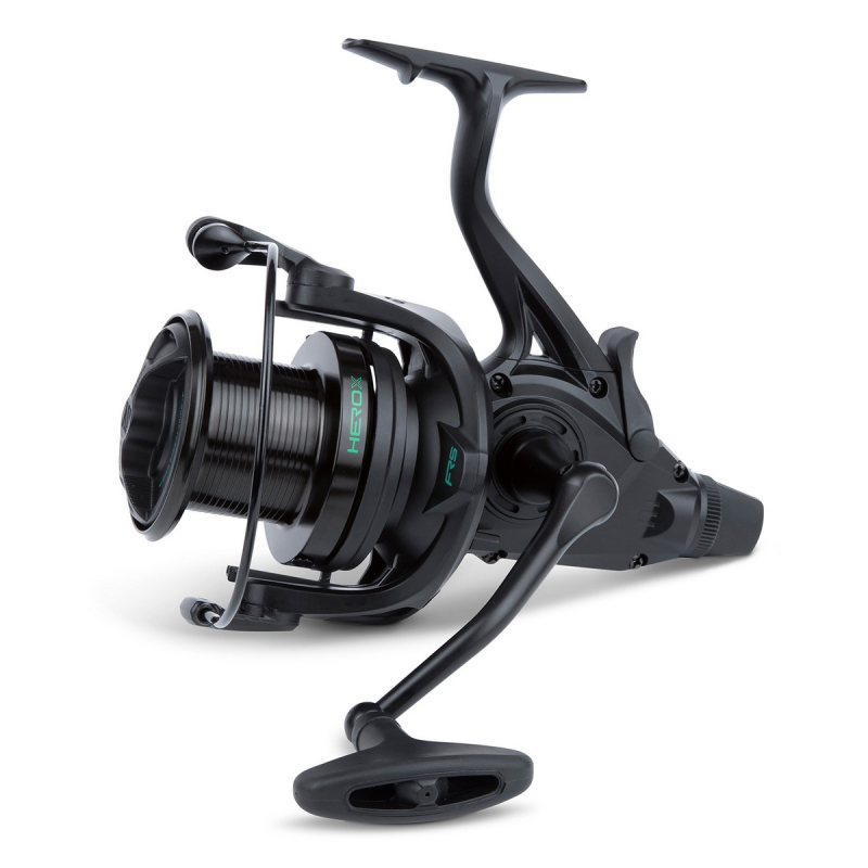 HEROX FRS 8 000 je vyroben s ohledem na spolehlivost a náročné podmínky rybolovu. Ideální pro rybáře, kteří upřednostňují baitrunner systém a vysokou kapacitu vlasce. Mikronastavatelný zadní brzdový systém podává vlasec téměř bez odporu a lze jej jednoduše přehodit polovičním otočením kliky. Převod wormshaft zajišťuje dokonalé umístění vlasce, zatímco rolnička pomáhá předcházet zamotání vlasce. Překvapením je, že kromě toho, že je na svoji velikost nečekaně lehký, tento naviják navine více než metr vlasce na jedno otočení kliky! Vysoce účinné klipy na vlasec se spínači zvyšují přesnost, zatímco rychlý a přesný brzdný systém zajišťuje, že v nejdůležitějších momentech zůstanete pod kontrolou.