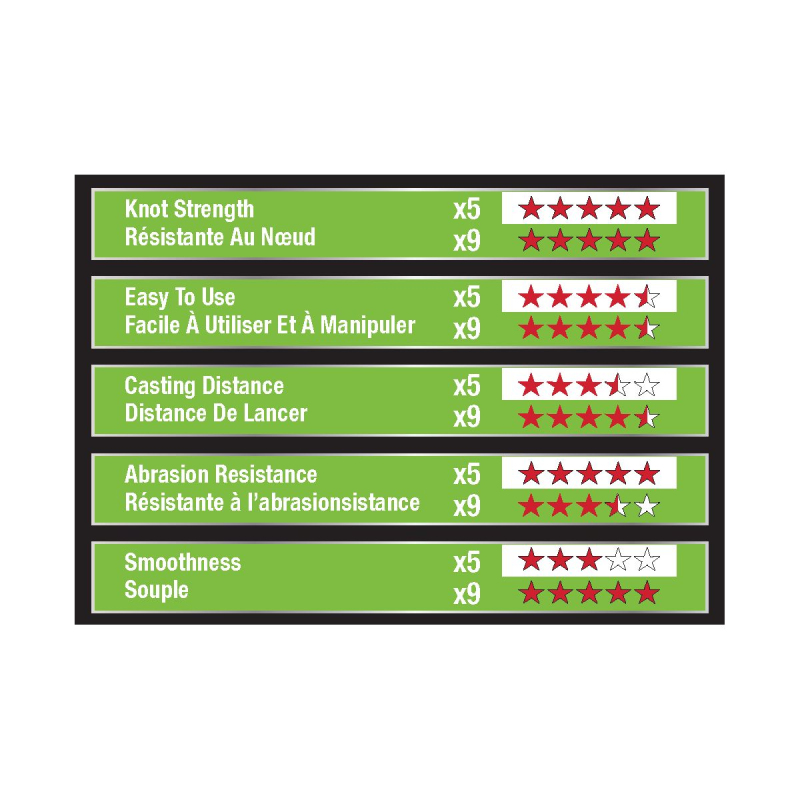 - šňůra X9 je tvořena osmi základními vlákny a jedním jádrovým vláknem, které dohromady tvoří devíti vláknovou šňůru