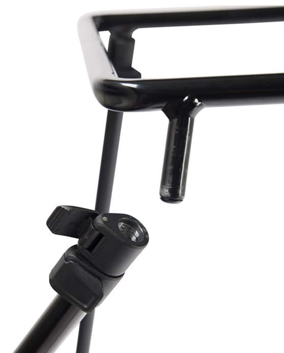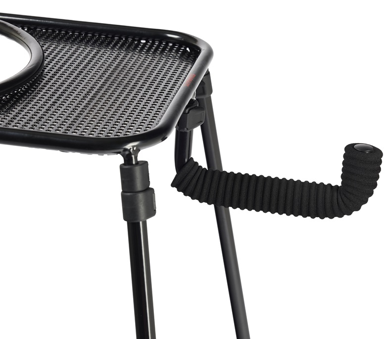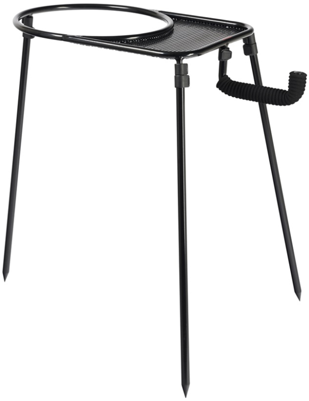 Stojan na kbelík s nastavitelnými teleskopickými nohami. Nohy lze pro snadný transport odšroubovat. Součástí stojanu je i menší stoleček na odkládání drobností a hrazda na opření prutu. Kbelík není součástí balení. Dodáváno v transportním obalu.
