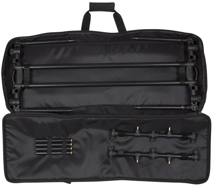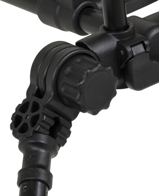 Lehká, robustní hliníková konstrukce, matně černý povrch, robustní klouby a klipy, nastavitelný závit pro lehké upevnění signalizátorů.