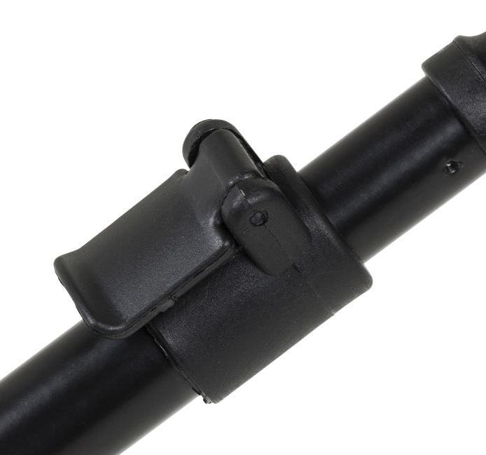 Lehká, robustní hliníková konstrukce, matně černý povrch, robustní klouby a klipy, nastavitelný závit pro lehké upevnění signalizátorů.