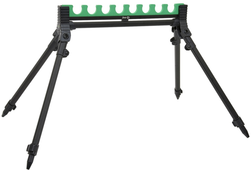 Podpěra pro umístění 8 prutů. EVA materiál pro jejich maximální ochranu. 4 nastavitelné teleskopické nohy pro umístění v terénu.
