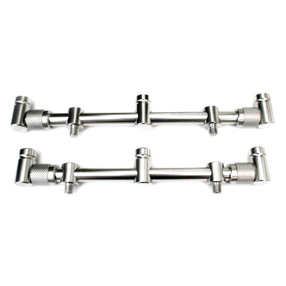 Špičkové elegantní hrazdy vyrobené z nerezové oceli, které zaručují bezpečné a stabilní uložení vašich prutů. Na jejich výrobu byl použit pevný nerezový materiál z UK o tloušťce 13,9 mm. V nabídce jsou hrazdy na 2, 3 i 4 pruty, pevné i výsuvné a na jednu vidličku, či na dvě, tzv. SNAG. Některé mají navíc speciální Dual Lock systém upínání, díky kterému skvěle zafixujete hlásiče i rohatinky. Balení: 2 ks