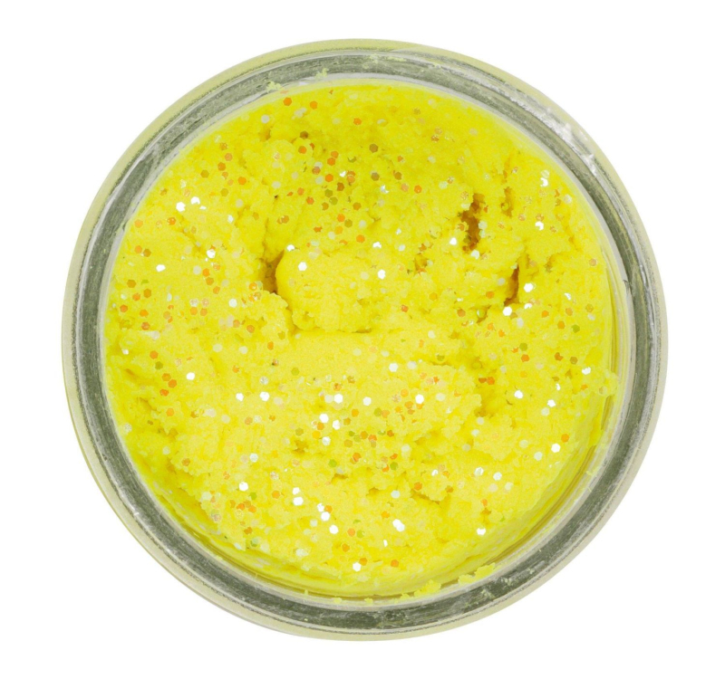 Těsto Berkley PowerBait Trout Bait Natural Glitter s výraznou chutí a aroma patří k nejúčinnějším nástrahám na pstruhy a siveny na světě. Plovoucí konzistence, atraktační látky a hlavně lesknoucí se mikro-šupinky dvojnásobně zvyšují úspěšnost záběru oproti obyčejným nástrahám například tavenému sýru.