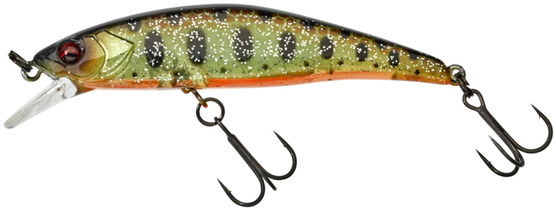 TRICOROLL KNOCKER 63 SHW je těžší, hlučnou verzí malé nástrahy TRICOROLL RYUSHIN 63 SHW. Přidání wolframové kuličky zvyšuje hmotnost každé nástrahy v průměru o 6 %, zlepšuje přesnost nahazování a vzdálenost. Chrastivý zvuk nástrahy ji pomáhá rybám lokalizovat i na velkou vzdálenost. Ideální pro lov okounů, pstruhů a bolenů. Tento wobler je vhodný do silného proudu a lovení v hlubokých tůních. Velmi stabilní nástraha i v silném proudu. Při propadu nástraha vibruje kolem svojí osy. Pro ještě větší jistotu zdolání ryby je břišní trojháček připevněn k obratlíku, který se může otáčet o plných 360 stupňů. Některé barvy obsahují UV body. Délka 5,3 cm, váha 4,3 g, potápivost 1-1,2 m, potápivý.