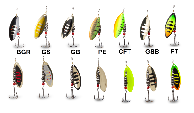 Klasická rotační třpytka s podlouhlým listem. Je vyrobena z kvalitního materiálu a doplněna kvalitními komponenty. Je osazena háčky Mustad. Lopatka má z každé strany jiný design.