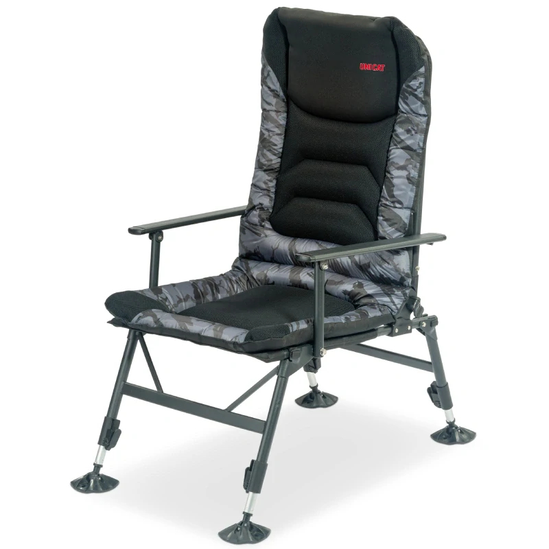 Uni Cat Superior Cat Chair je promyšlené a mimořádně pohodlné křeslo navržené pro náročné podmínky u vody. Díky vodoodpudivému materiálu je vhodné nejen pro rybaření, ale i pro kempování a další outdoorové použití. Jemný mechanismus nastavení opěradla umožňuje přesné doladění posedu, extra široký neoprenový hlavový díl zvyšuje komfort při delším sezení. Stabilní ocelovo-hliníková konstrukce v kombinaci s extra širokými bahenními patkami zajišťuje jistotu na měkkém i nerovném podkladu. Moderní provedení Grey Camou podtrhuje celkově praktický a současný vzhled.