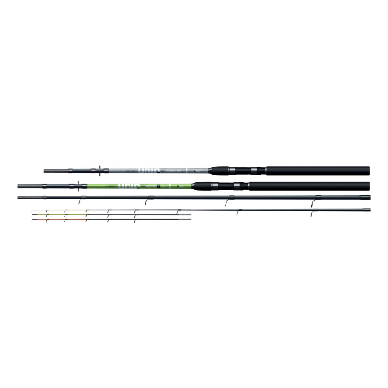 Pruty UNIQ Feeder jsou ekonomické, ale výkonné pruty vhodné pro různé rybolovné podmínky. Stejně jako série WAVE jsou třídílné + 3 špičky, s výjimkou kratších modelů Picker, které jsou dvoudílné.