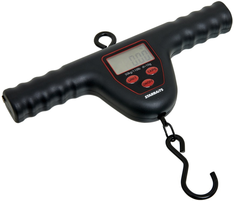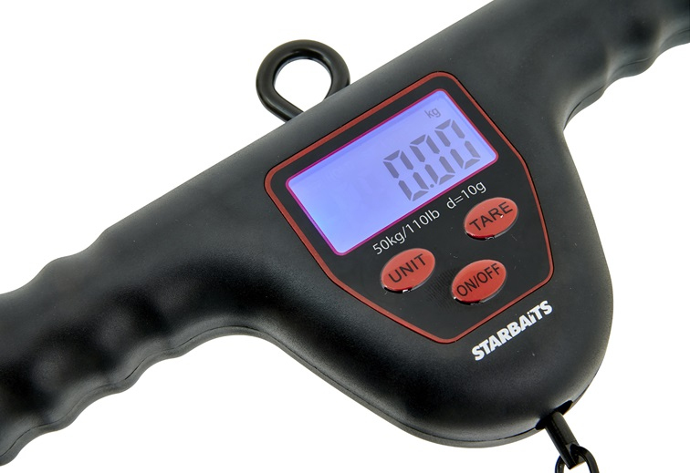 Spolehlivá digitální váha pro zvážení vašeho úlovku. Ergonomická rukojeť, pevné háčky pro zavěšení i umístění úlovku, maximální váha 50 kg (přesnost na 10 g), LED osvícení displeje pro noční použití, váha udávaná v kg nebo lbs, pracuje na 2 baterie AAA, voděodolnost, funkce tárování, funkce zapamatování váhy, teploměr (`C/F). Rozměr: 25x14x3 cm, váha 225 g.