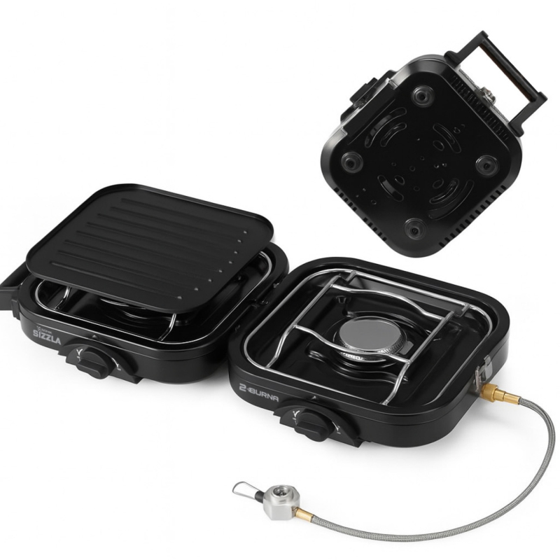 - Plně přenosný dvouplotýnkový kempingový vařič