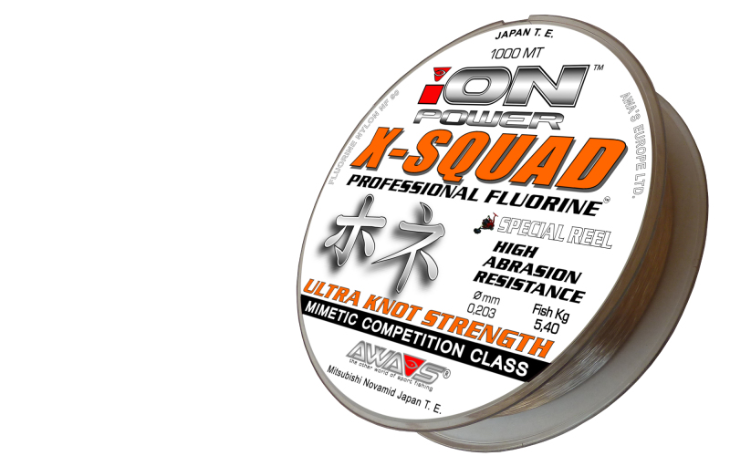 Do série velkometrážních monofilů ION POWER patří i X-SQUAD. Jedná se o univerzální vlasec určený pro širokou rybářskou veřejnost. Má pískovou, transparentní barvu, je oděruvzdorný, vyznačuje se vysokou pevností v uzlu a ochrannou proti UV záření. Patří do kategorie ekonomických vlasců, přitom jeho kvalita výrazně překonává výhodnou cenu.