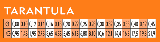 Nová molekulární struktura vlasce Tarantula se vyznačuje značně vyšší odolností proti přetržení a přitom má rovněž schopnost rozpínat se. Osvědčuje se na 100 % v situaci, kdy narazíme na velkou a agresivní rybu. Roztažnost je v případě tohoto vlasce ohromnou předností.