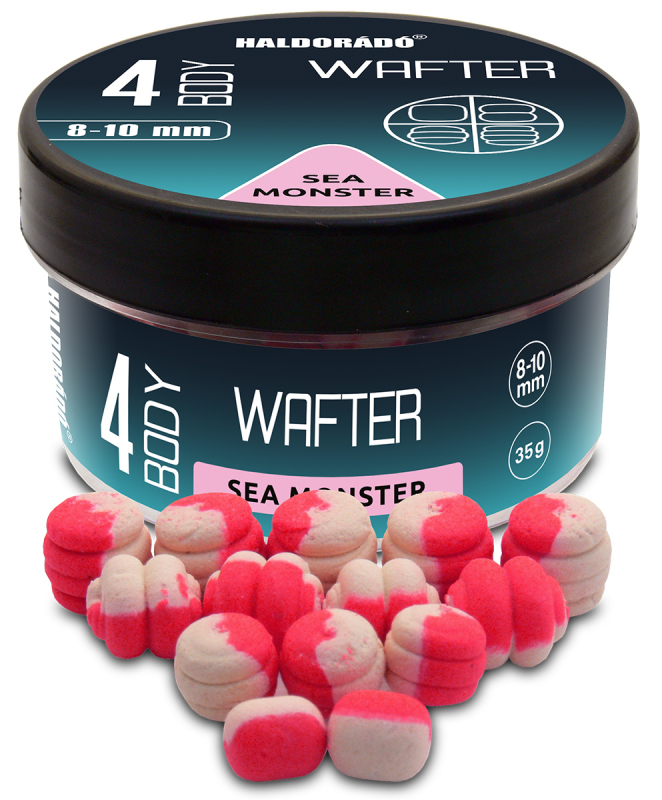 Vyvážené boilies nástrahy Wafters 4 BODY od Haldoráda o hmotnosti 35 g a průměru 8–10 mm vhodné pro lov kaprů a jiné dravé ryby. Díky vyvážené konstrukci se jemně vznášejí nad dnem, perfektně se chovají ve vodním sloupci a maximálně zvyšují pravděpodobnost záběru. Snadno přenosné balení.