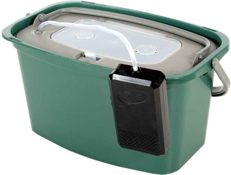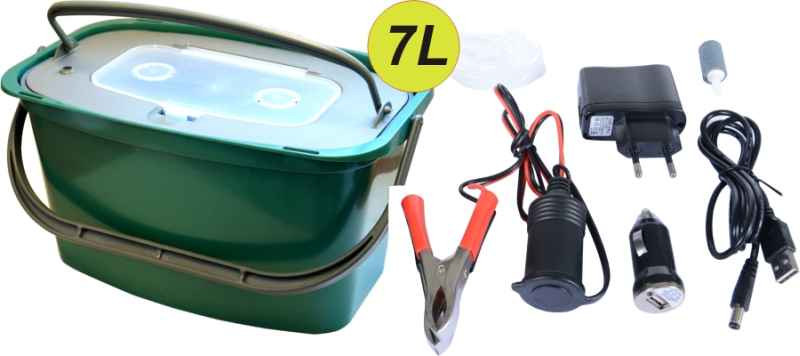 Okysličování aa Batterie, USB, auto adapter / 230V, svorky Vědro na živou nástrahu 7L - uzavíratelné