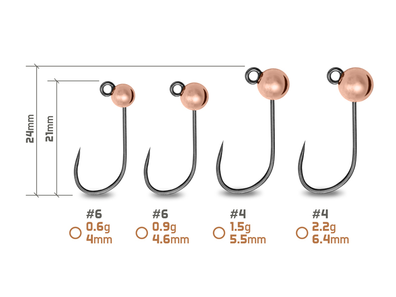 V naší nabídce naleznete různé průměry hlaviček, ze kterých si vyberete tu správnou možnost pro danou hloubku revíru a proudivost vody. Různé velikosti háčku umožňují nastražování různých druhů a velikostí umělých nástrah.