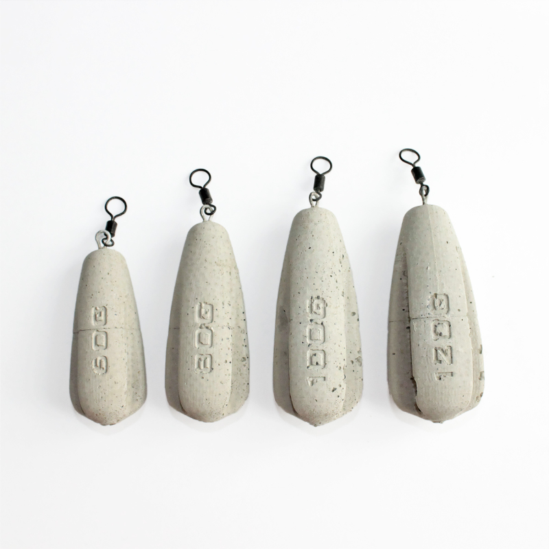 - rovnováha těžiště, ECO SINKERS mají vyvážené těžiště, aby zátěže byly schopny rovnoměrně klesat ke dnu bez zamotávání koncové montáže a bez samovolné rotace a to i za nepříznivých podmínek