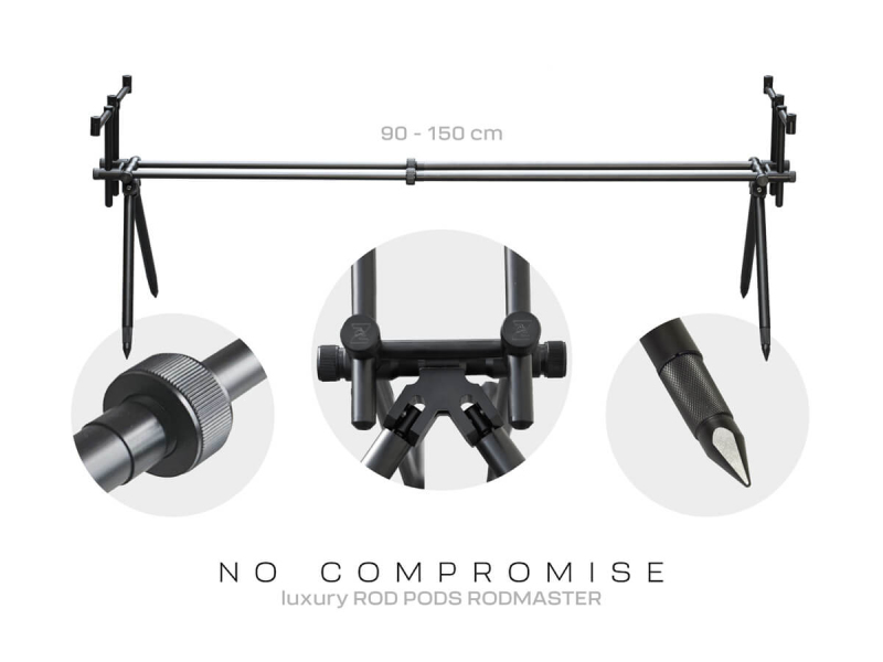 Díky precizně zpracované konstrukci nabízí RodMaster výjimečnou stabilitu i při prudkých záběrech, silném větru nebo nerovném břehu. Dvojitá středová tyč umožňuje široké nastavení délky a spolu s teleskopickými nohami poskytuje maximální flexibilitu při použití na různých typech břehů. Velkou předností jsou hrazdy vybavené maticemi, které umožňují pevné zajištění hlásičů a rohatinek bez nežádoucího povolování. Nohy s vyladěným aretačním systémem, jenž zaručuje, že zvolená délka zůstane pevně fixována i při dlouhodobém zatížení.